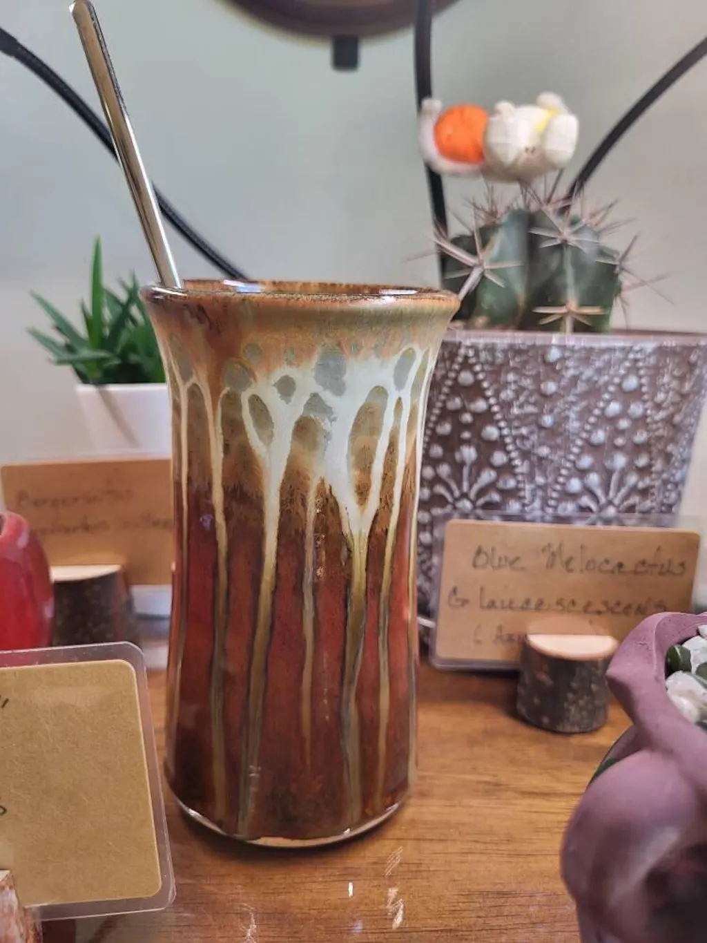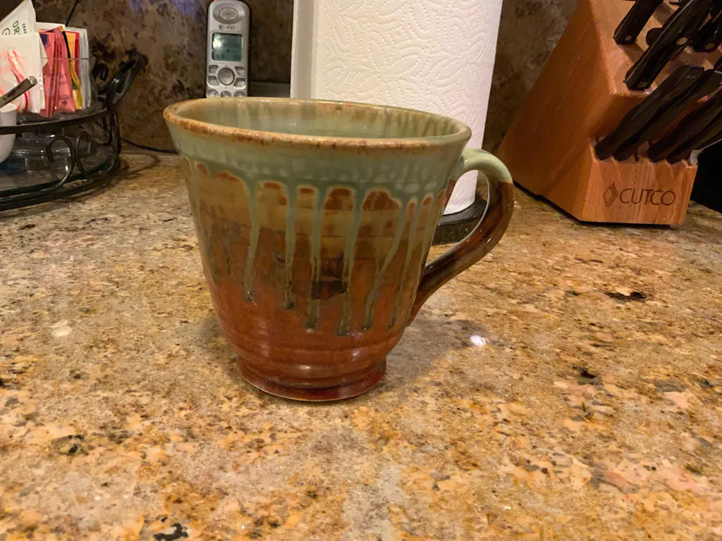 I purchased a second tumbler and am very happy. I gave my first tumbler as a gift, and decided to get one for myself. I love the colors and the drips that add interest to the piece. It is a beautiful addition to my pottery collection. I'm not giving this one away.