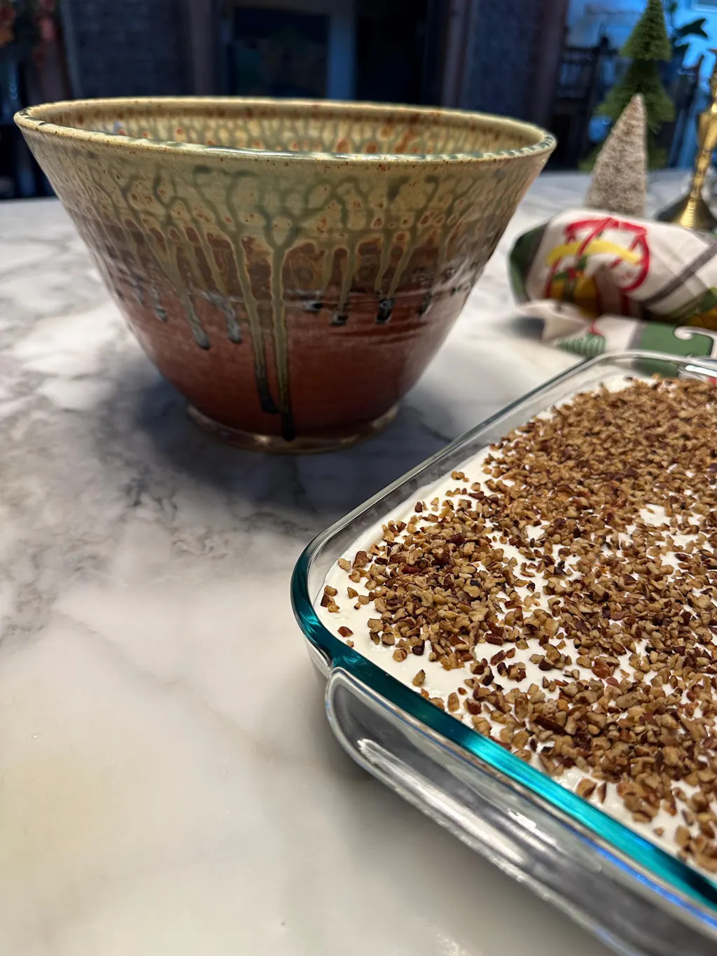 Bought this and another bowl of the same color glaze because I wanted something handmade to coordinate with my 60 year old dishes. They are as gorgeous as they are practical!
