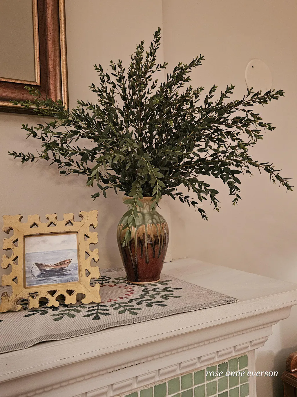 I have been searching for an "all season" vase to place on the mantle that complements our color pallet.